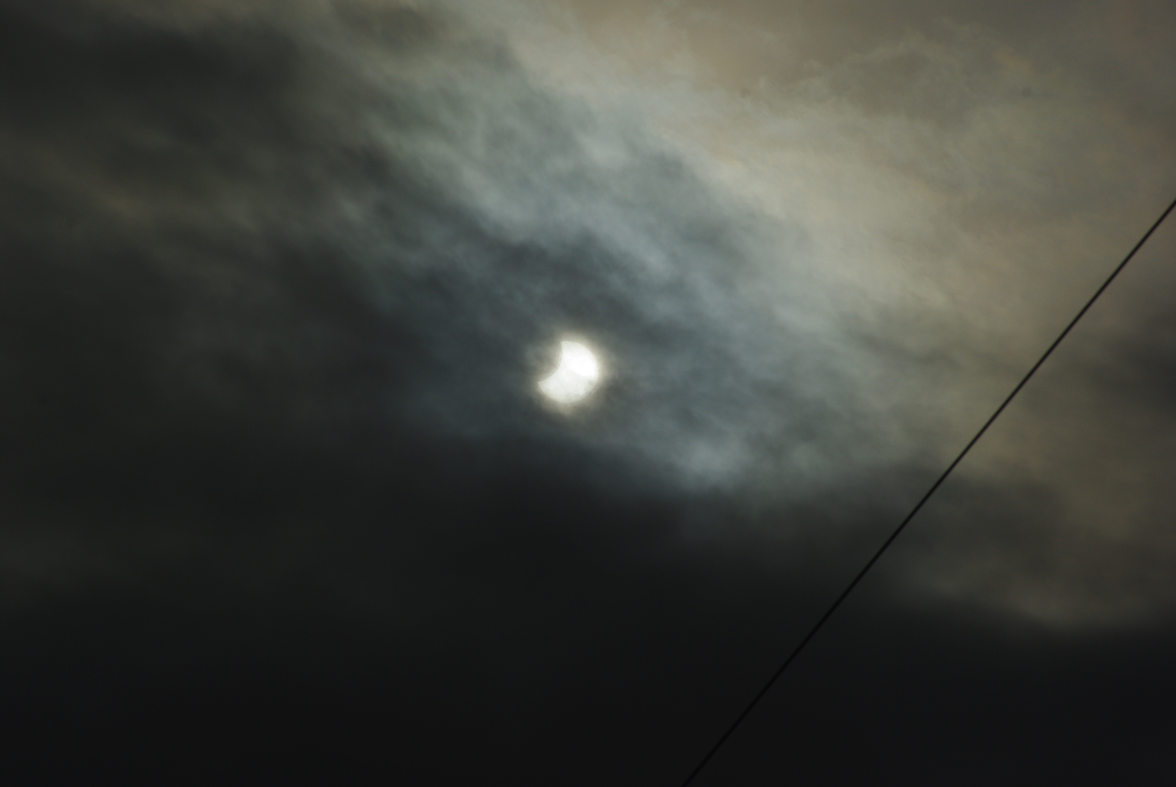 三脚を出して、部分日食の写真を撮影した。天気は曇りであったが、雲が減光フィルターの代わりとなり、うまく撮影できた。部分日食は皆既日食ほどの派手さはないが、興味深い天体現象である。