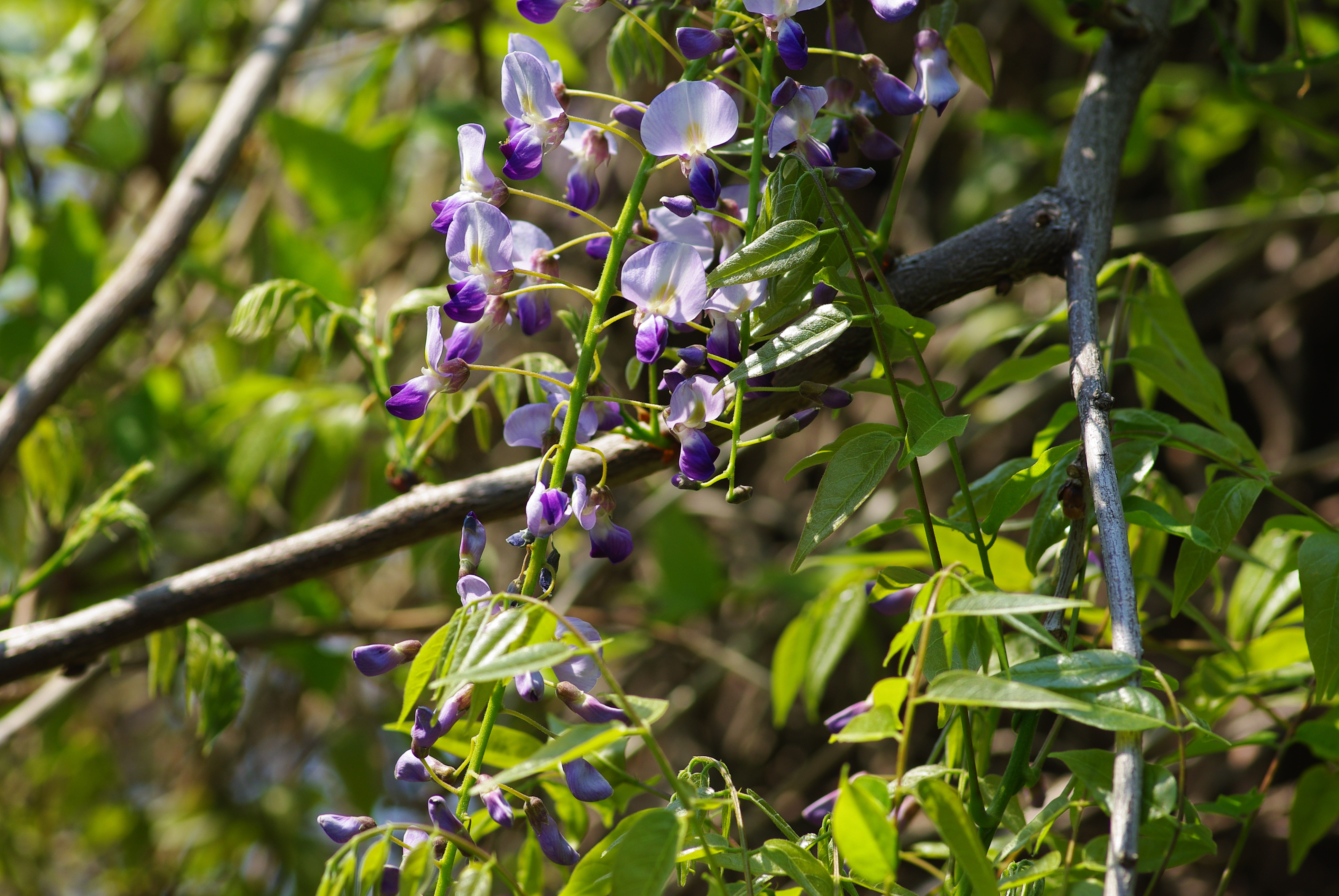 近所の藤棚の藤が咲いていた。紫色の花で、まだ蕾も残っている。 枝を刈り込み過ぎて、花が少ない時期もあったが、最近は良く咲くようになった。