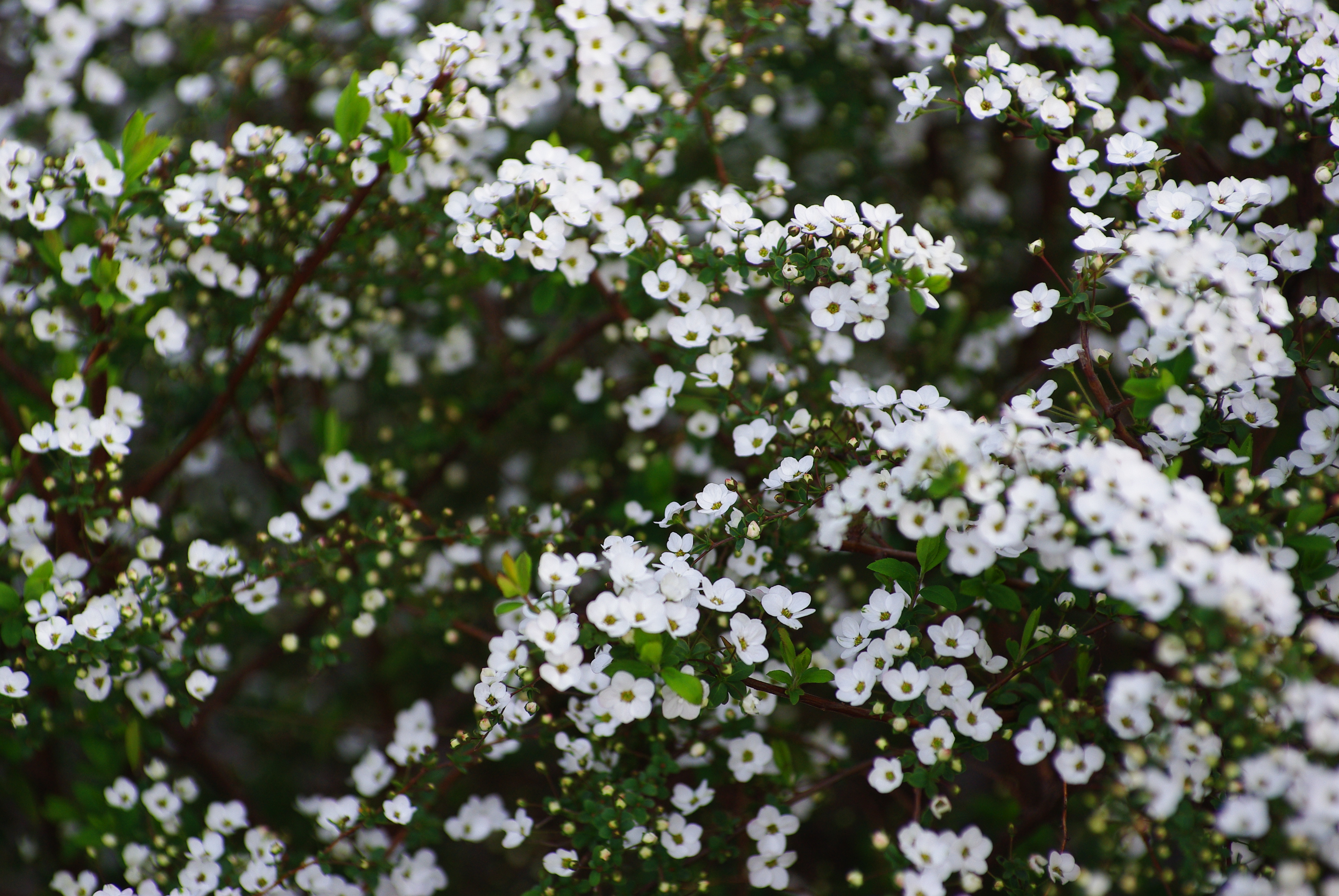 写真を撮った白い小さな花の名前が分からなくて、植物図鑑やWebを調べていたが、「ゆきやなぎ」ということが判明した。