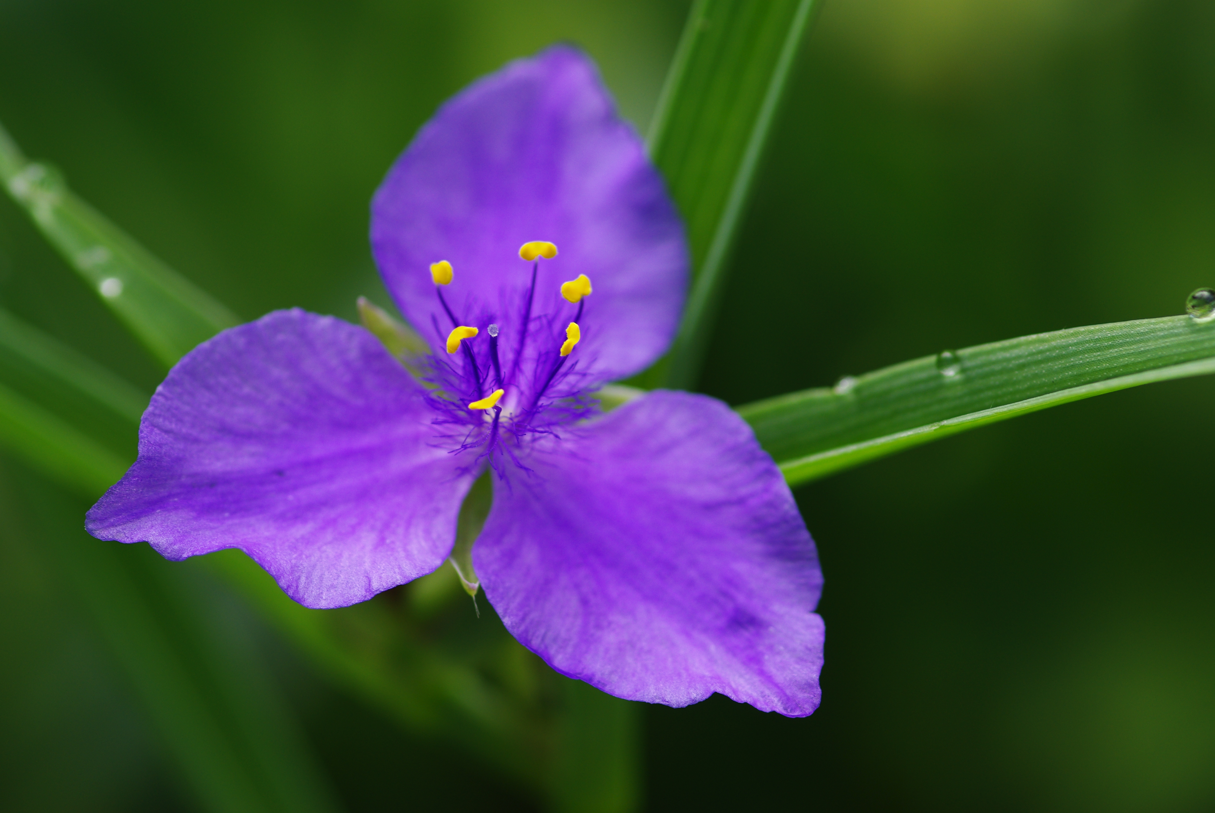 さっそく近所で見かけたムラサキツユクサの写真を撮ってみた。