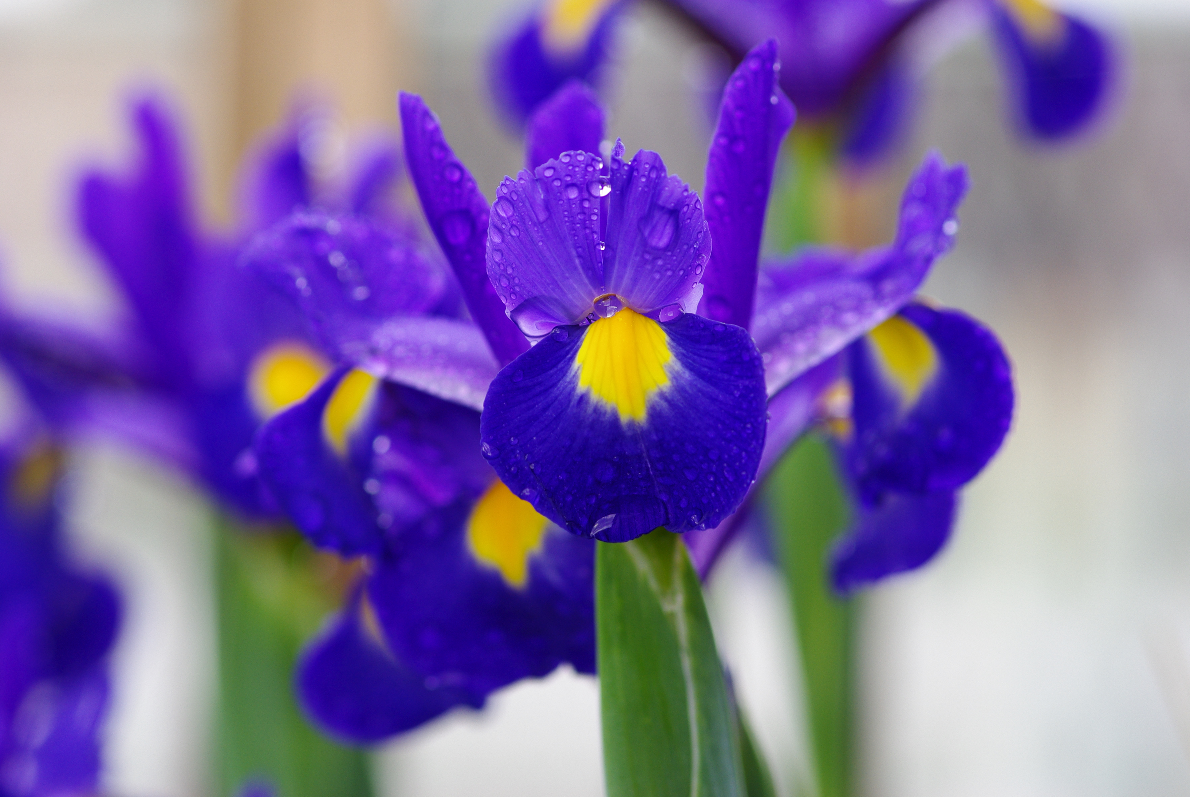 最初に植えたのは5個の球根のみだが、その後、勝手に増えて、今では20輪以上の花が咲くようになった。青と白のアイリスが咲いているが、やはり青の方が鮮やかである。