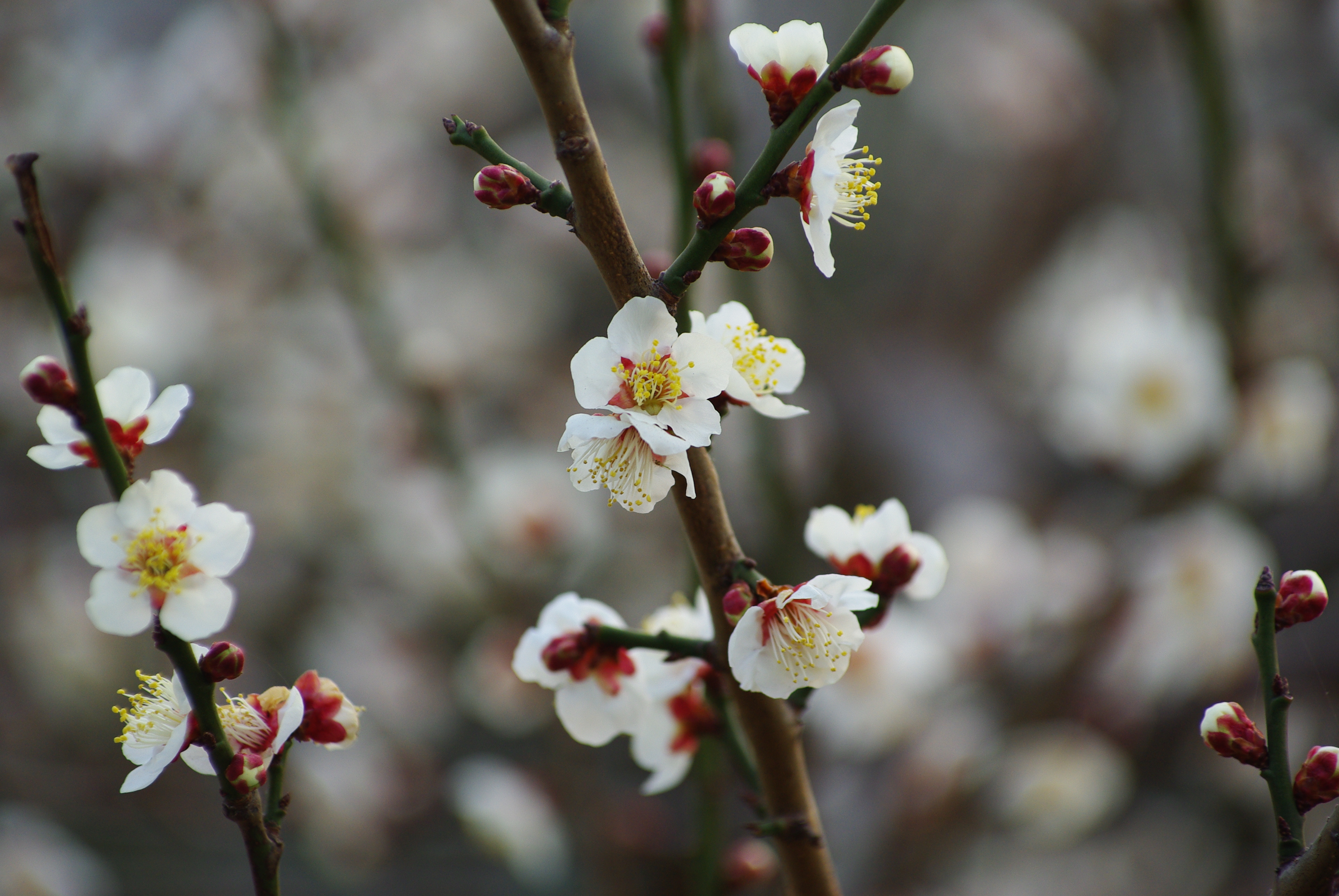 多摩川の側の畑で白梅が咲いていたので、写真を撮った。
