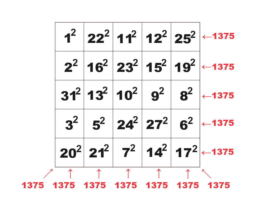 このように、上で紹介した(L=1375である)平方魔法陣が2個見つかった。