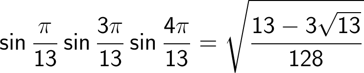 ■同様に、sin(π/13)sin(3π/13)sin(4π/13)を求める。
