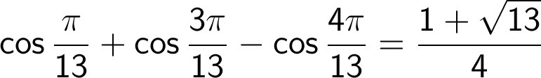 ■同様に、cos(π/13)+cos(3π/13)-cos(4π/13)を求める。